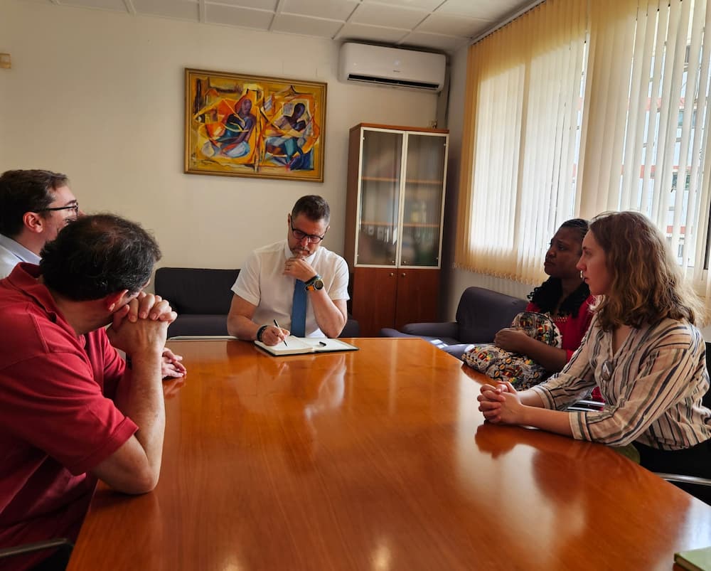 En este contexto, el Excmo. Embajador de España en Camerún, Juan Pedro Pérez-Gómez, recibió en la Embajada de España en Yaundé a una delegación integrada por miembros de Fundación Recover y Ferrovial. En el encuentro participaron los voluntarios de Ferrovial Luis Fernando Amigo Linares, Gonzalo Pedraz Yáñez y Grace Elizabeth Surgent, junto a Ricardo Navas, responsable de Programas de RSC de Ferrovial. Por parte de Fundación Recover, asistieron Emilie Ngono, representante para África y responsable del Programa de Camerún; Cristina Rodrigo Ferrán, gestora del programa de Voluntariado, Formación y Pacientes; y Denise Bundt, del área de programas.