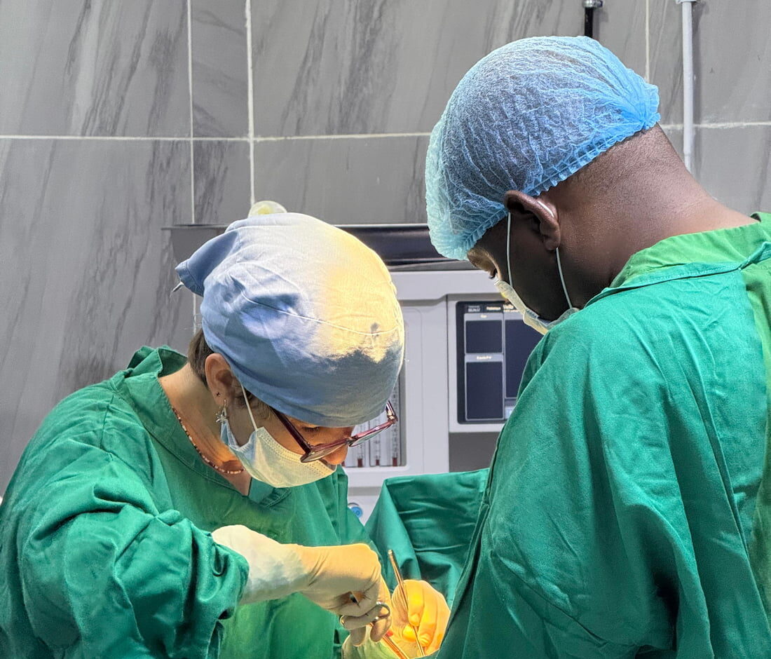En Yaundé, junto al equipo local, atendió a 28 niños y niñas con diferentes patologías como hernias, hidroceles, criptorquidias o quemaduras graves. En este video la vemos operando a un pequeño de 7 años con una cirugía llamada orquidopexia (para tratar una criptorquidia, es decir, un testículo que no había descendido al escroto).